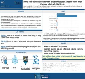 P382 – Effect of Socio-economic and Patient-related factors on Abidance and Adherence to Voice therapy In Lebanese Patients with Voice Disorders.